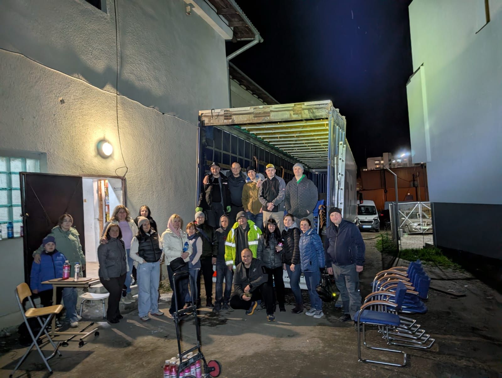 Die freiwilligen Helfer konnten den Hilfstransport Nr. 109 noch vor Mitternacht entladen. Zollabfertigungen und Grenzübertritte verliefen rasch und problemlos.
