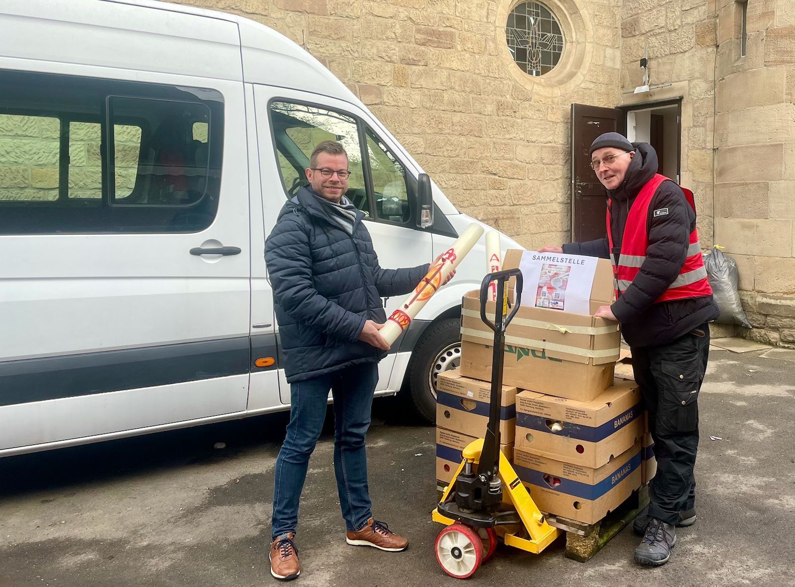 Zwei Tage waren das kürzlich am Kirchort Sankt Joseph und zwei große LKWs. Nothilfe mit Spenden der Bevölkerung.