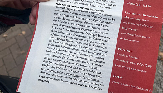 Gute Nachbarschaft zur Kirchengemeinde Sankt Familia haben wir seit viele Jahren. Unterstützung in der Ukrainehilfe gehört dazu!
