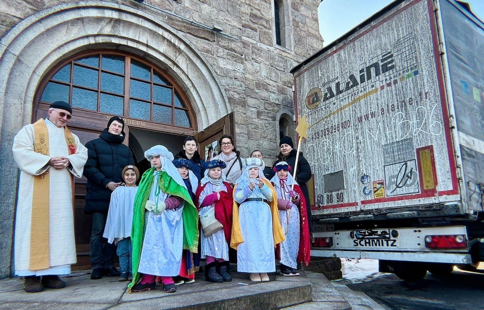 Am Kirchort Sankt Joseph waren die Sternsinger der Pfarrei und es gab einen besonderen Segen für den LKW vor der Kirchentüre, der mit Hilfslieferungen in die Ukraine fährt.