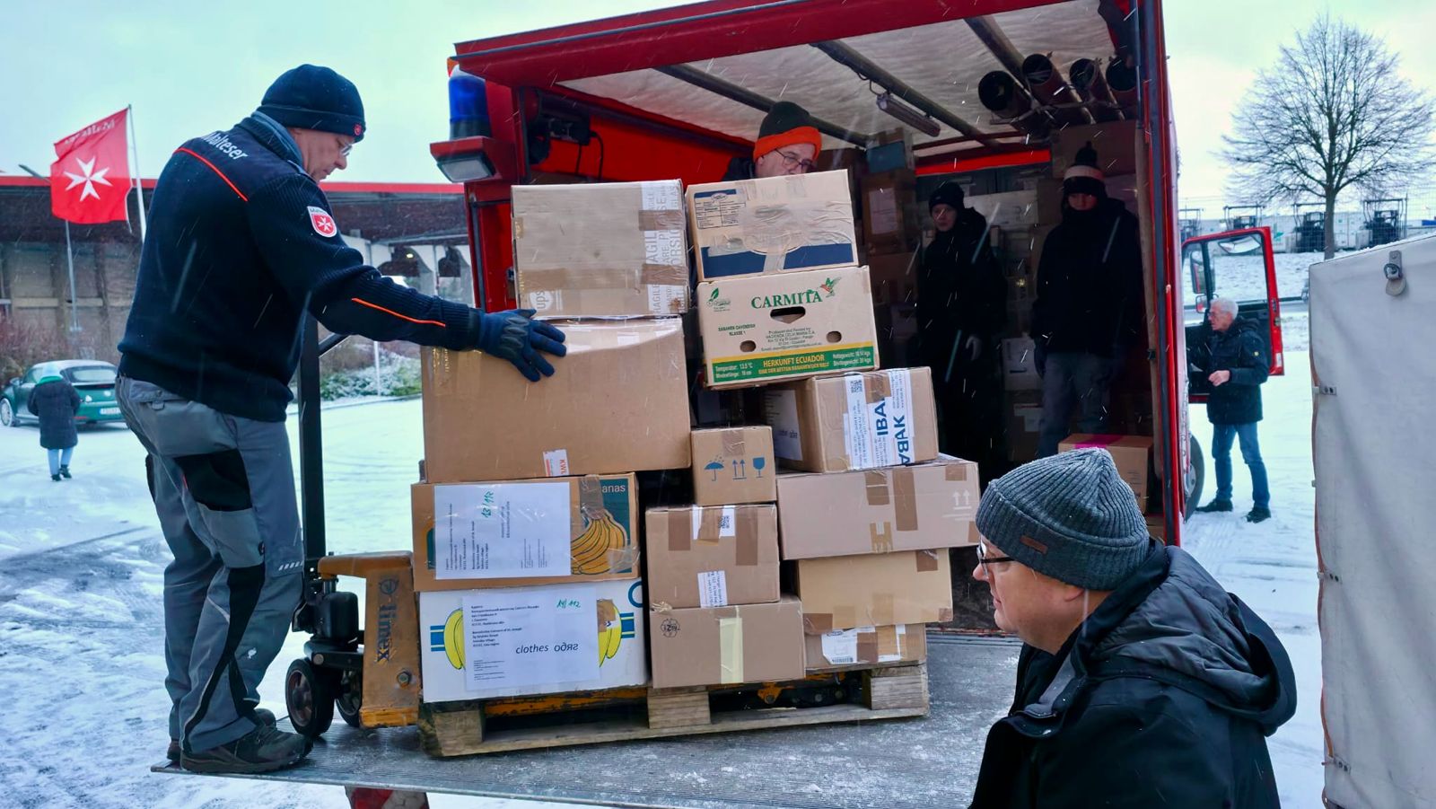 Am Petersberg bei Fulda werden Hilfsgüter für die Ukraine verladen und nach Kassel gefahren. Den Transport begleitet ein kleiner Freundeskreis, der die Sozialkirche Sankt Joseph kennen lernen möchte und über die Ukrainehilfe etwas erfahren will.